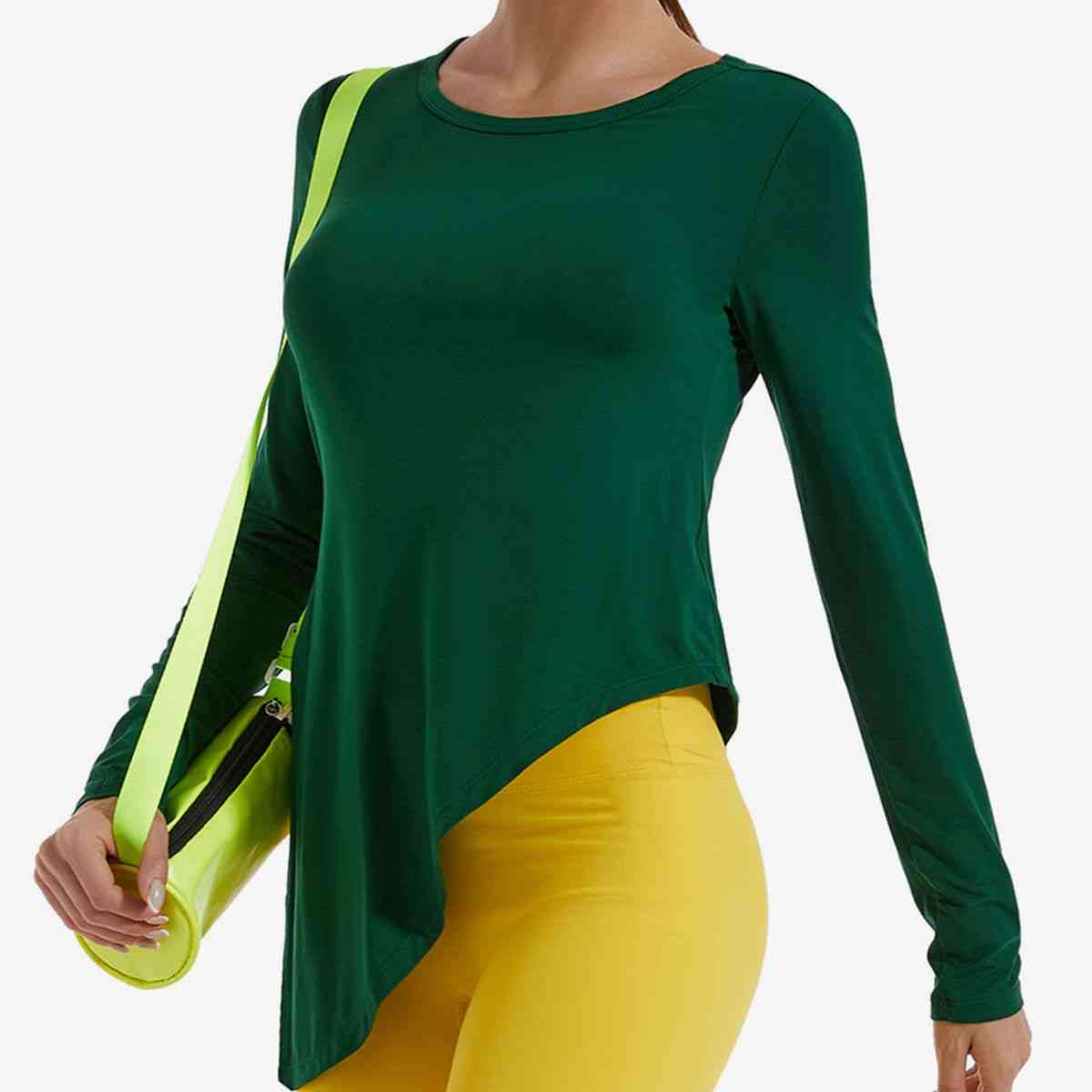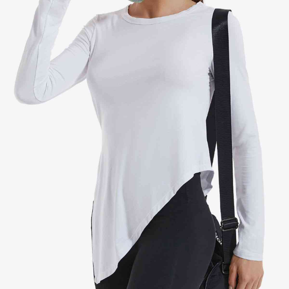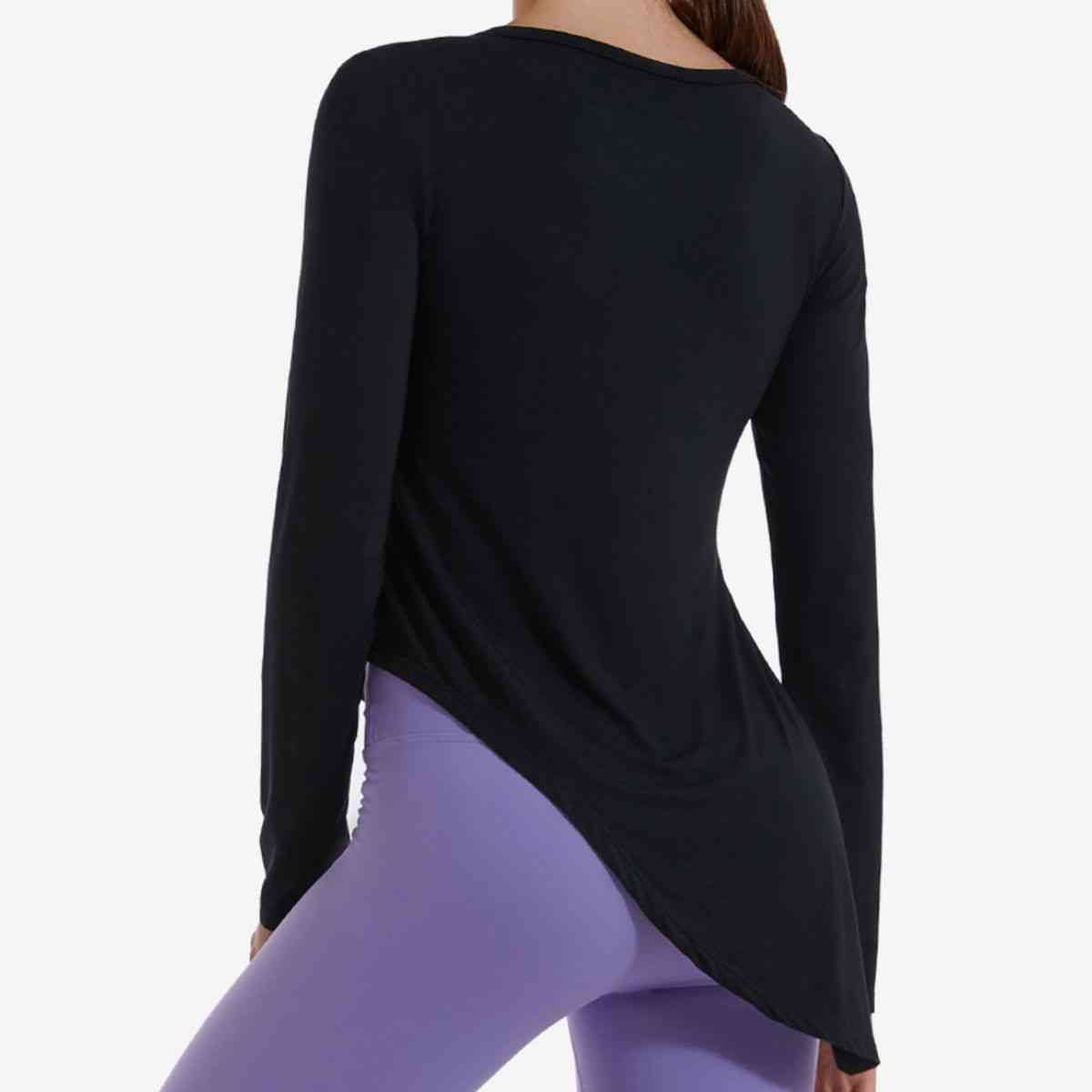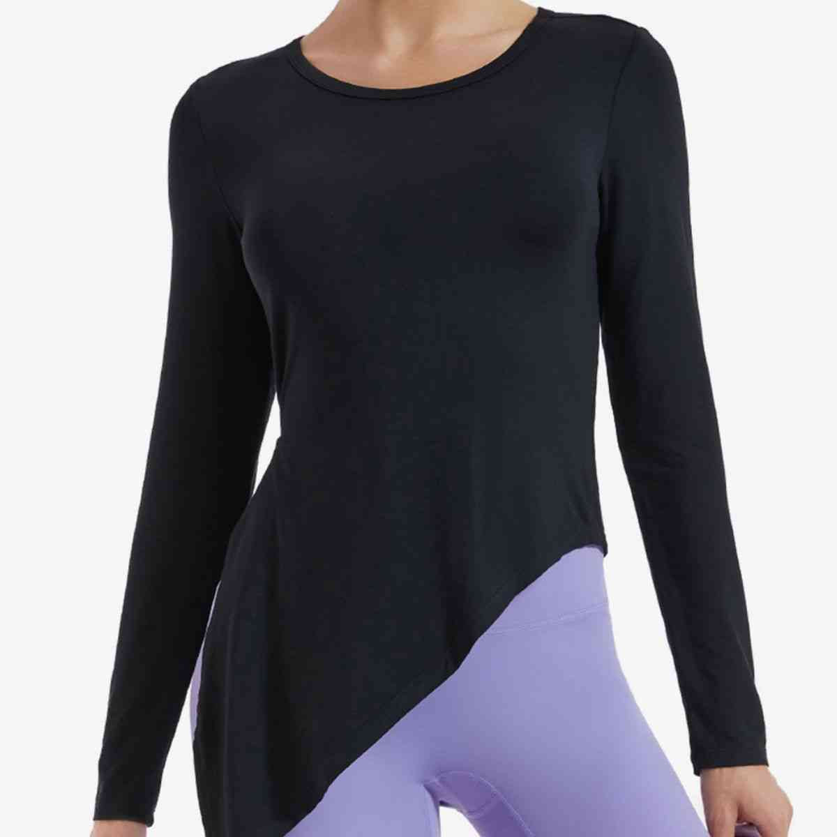 Asymmetrical Round Neck Long Sleeve Sports Top