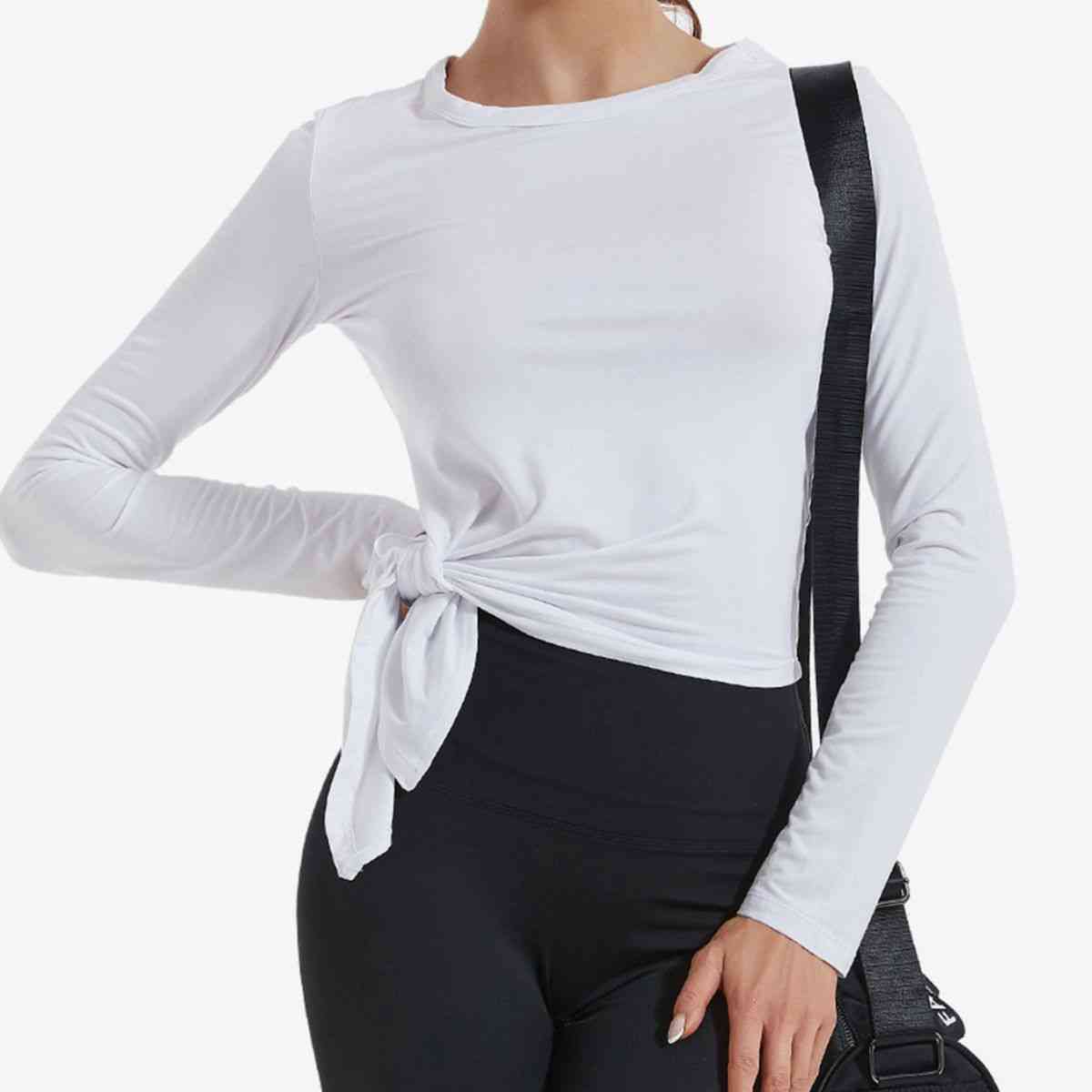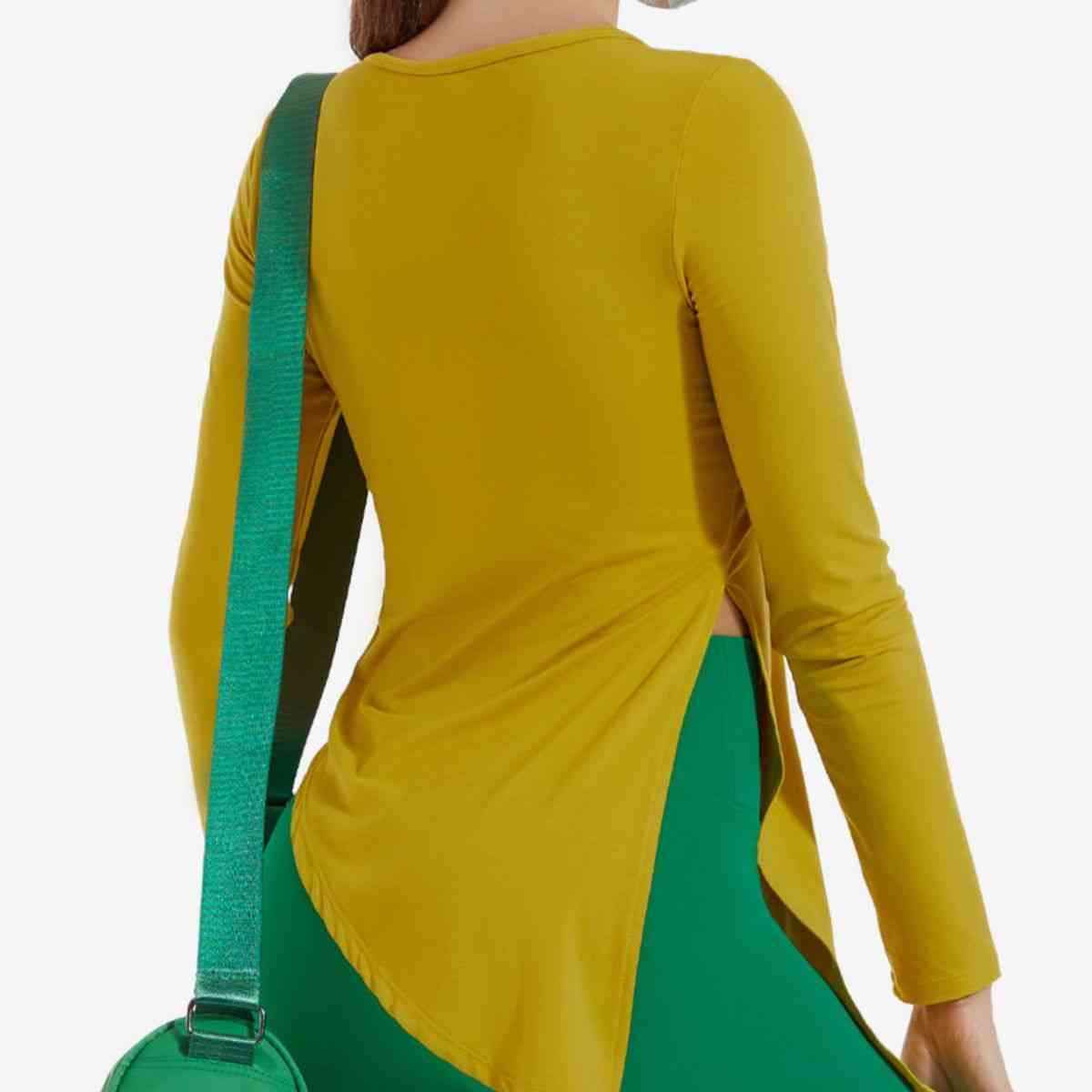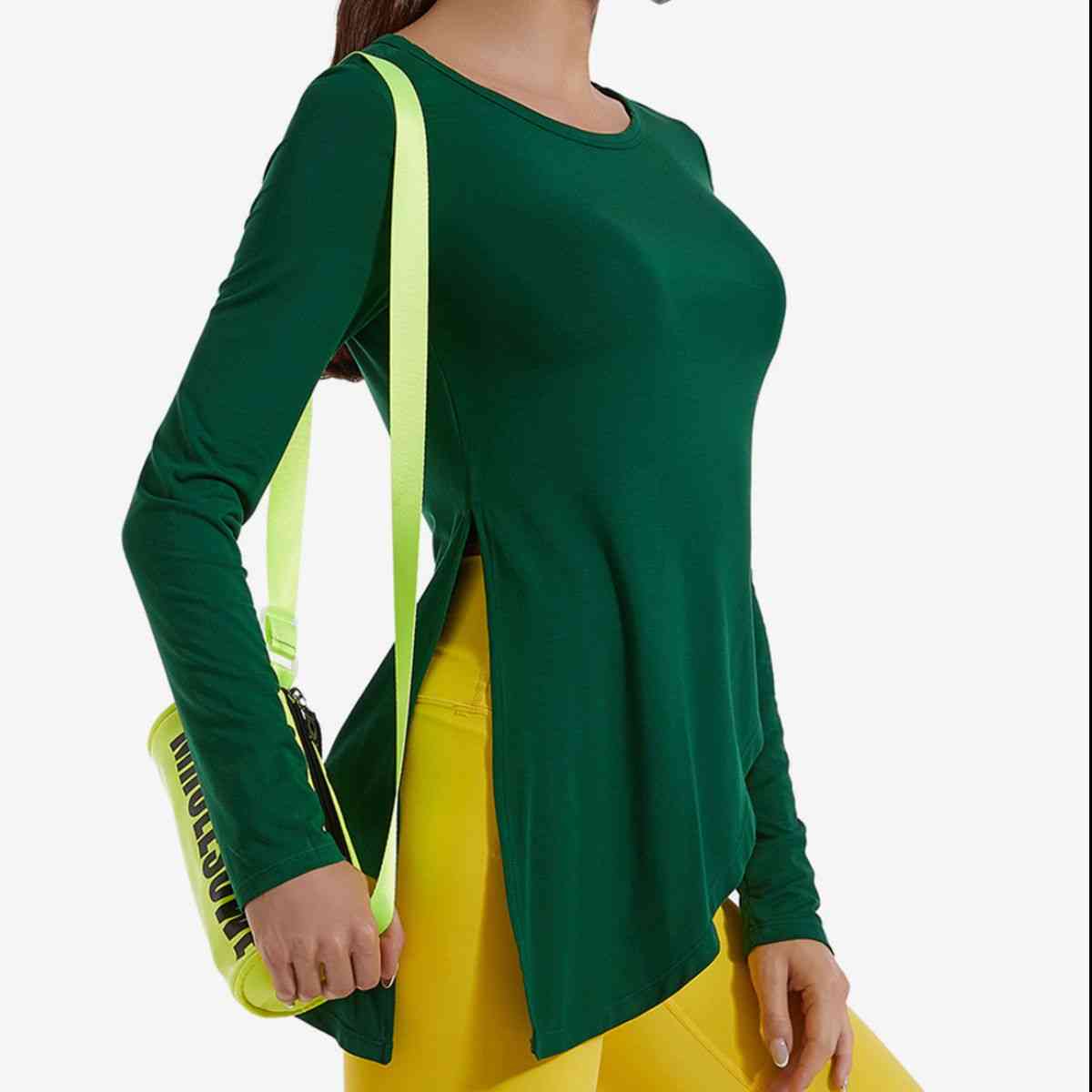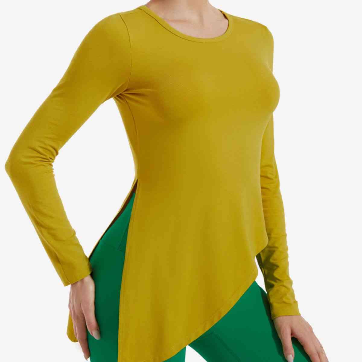 Asymmetrical Round Neck Long Sleeve Sports Top