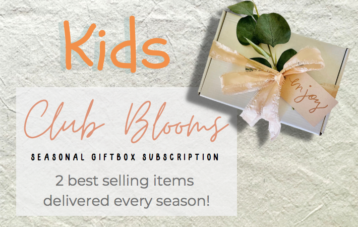 Our Kids Club Blooms Seasonal Subscription is an exciting way to treat your kiddos and to receive our top selling Kids products! Each January, April, July & October, you will receive 2 items from our inventory. Dana (The Rare Blooms Founder & Creative Director) will hand-pick your items based off of our current top selling Kids items.