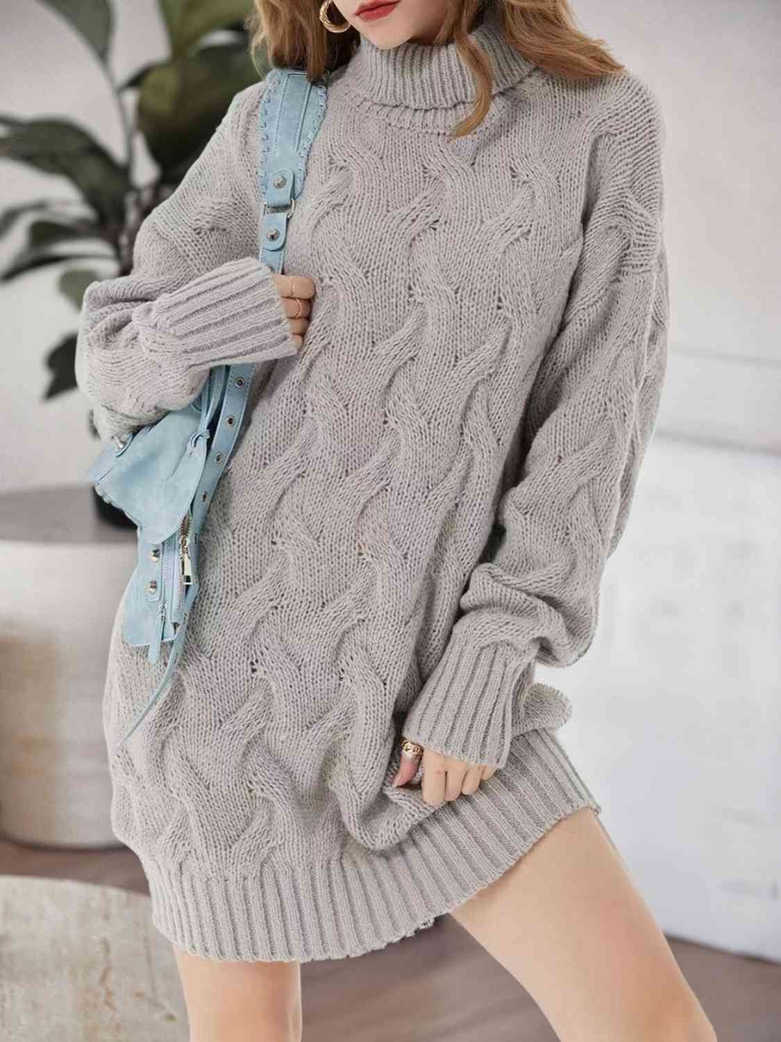Cable-Knit Turtleneck Sweater Dress