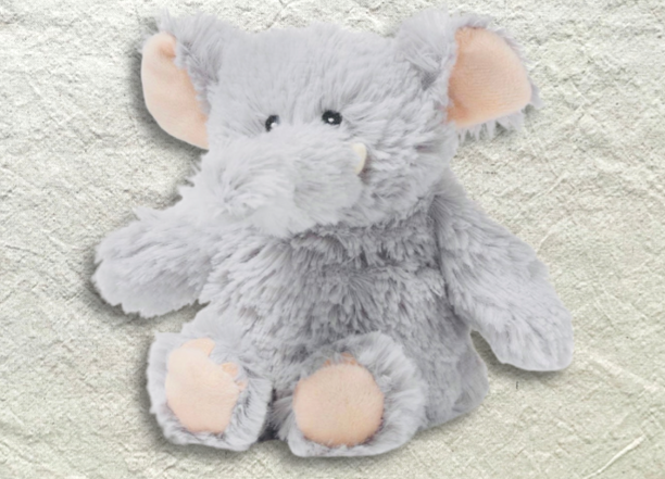 1 Elephant Warmie - Cute 9" plush animals can be warmed in the microwave! Gently scented with French Lavender that is carefully sourced from local growers in Provence. Do not immerse in water - surface clean only with damp sponge.