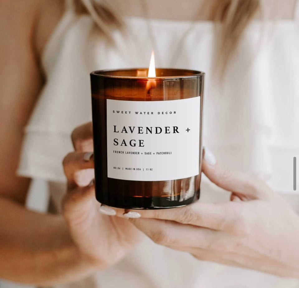 Lavender + Sage Soy Candle | 11 oz Amber Jar