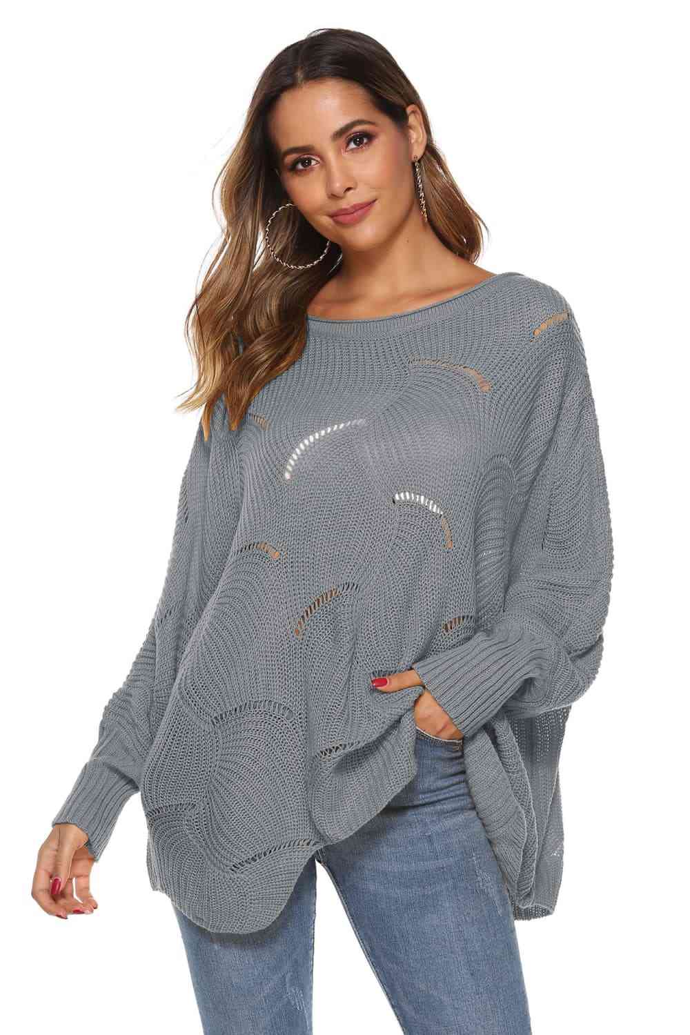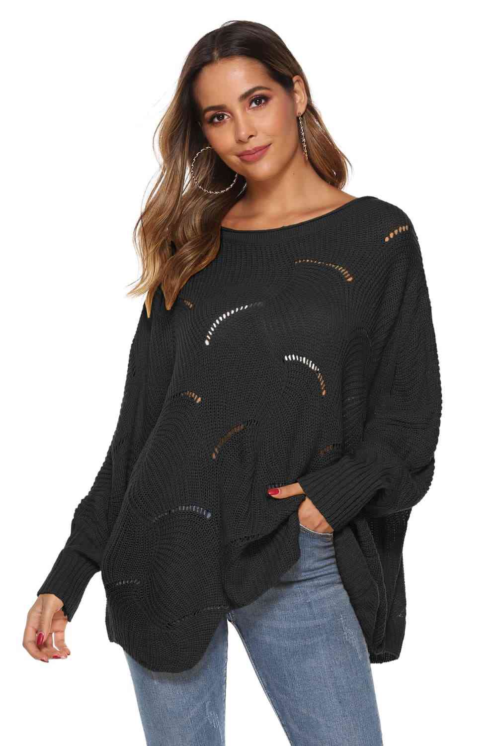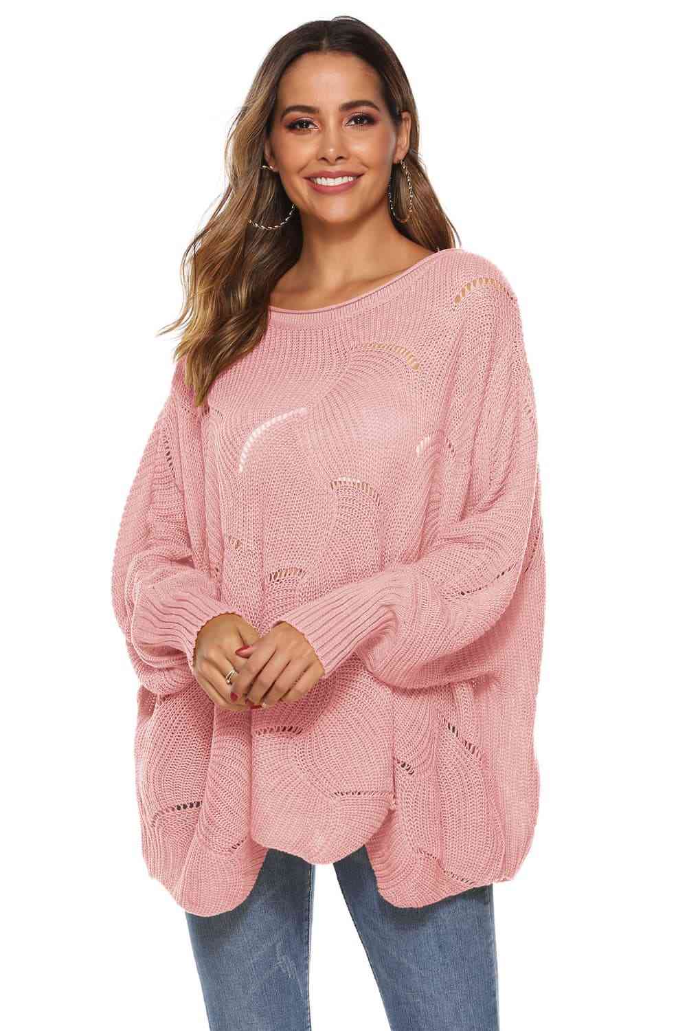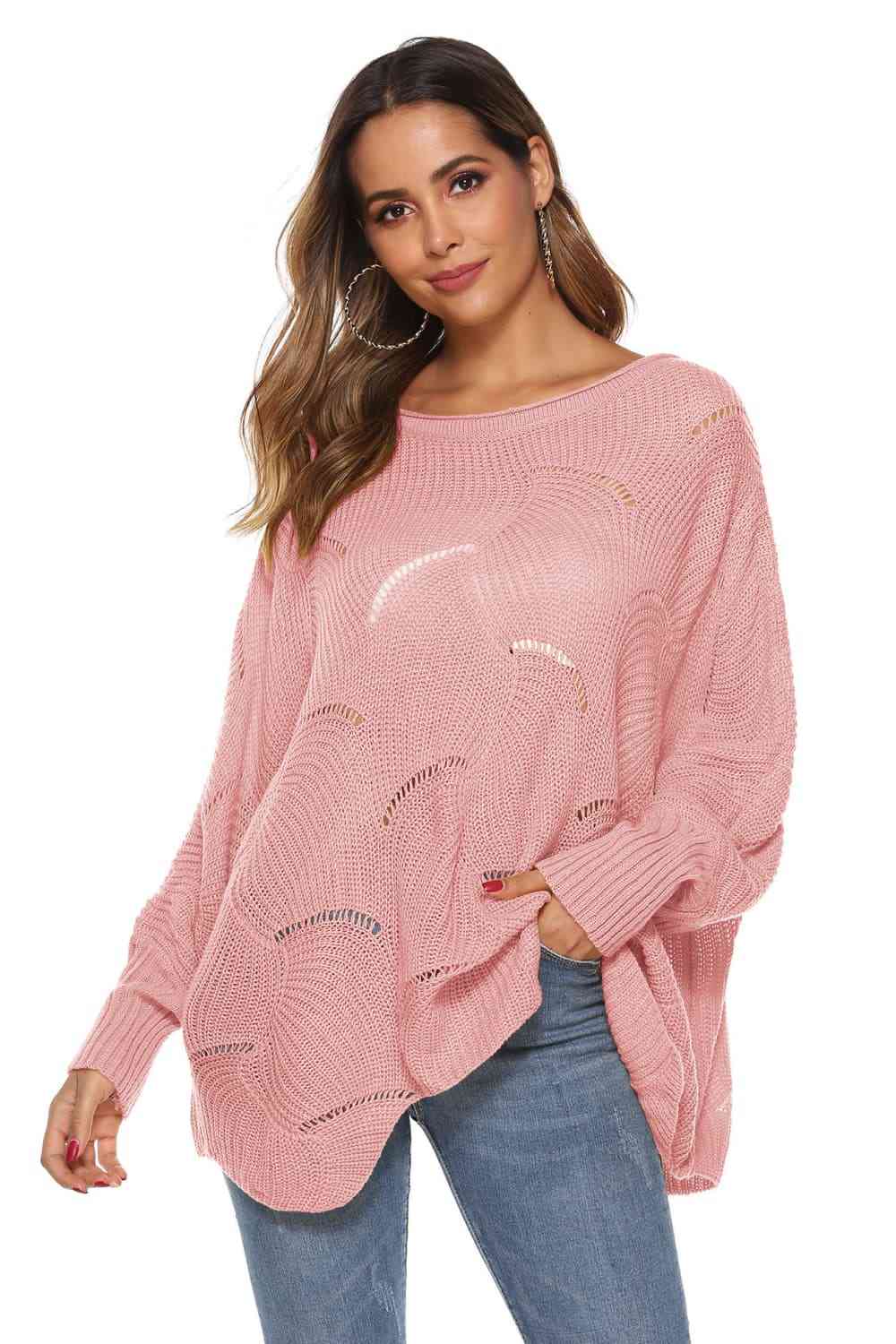 Round Neck Long Sleeve Openwork Sweater
