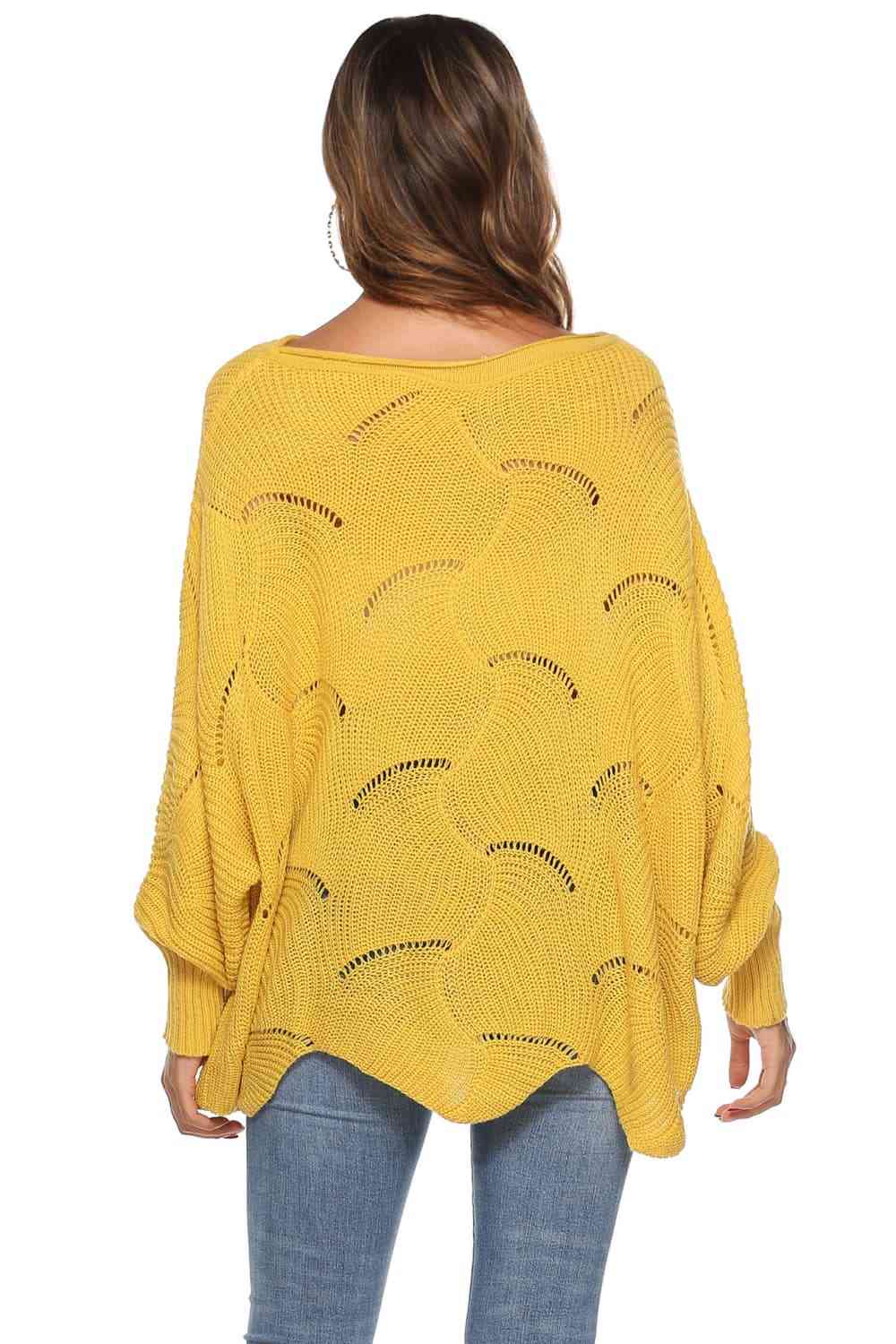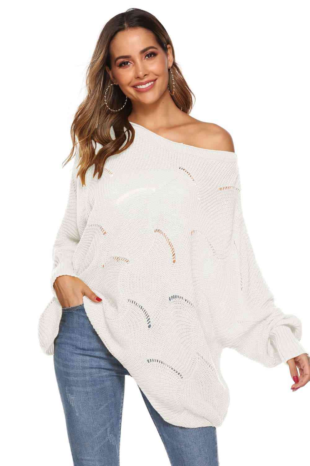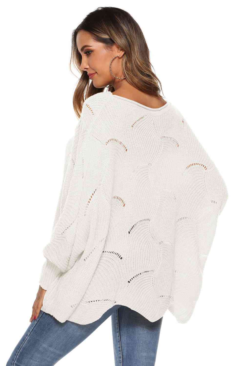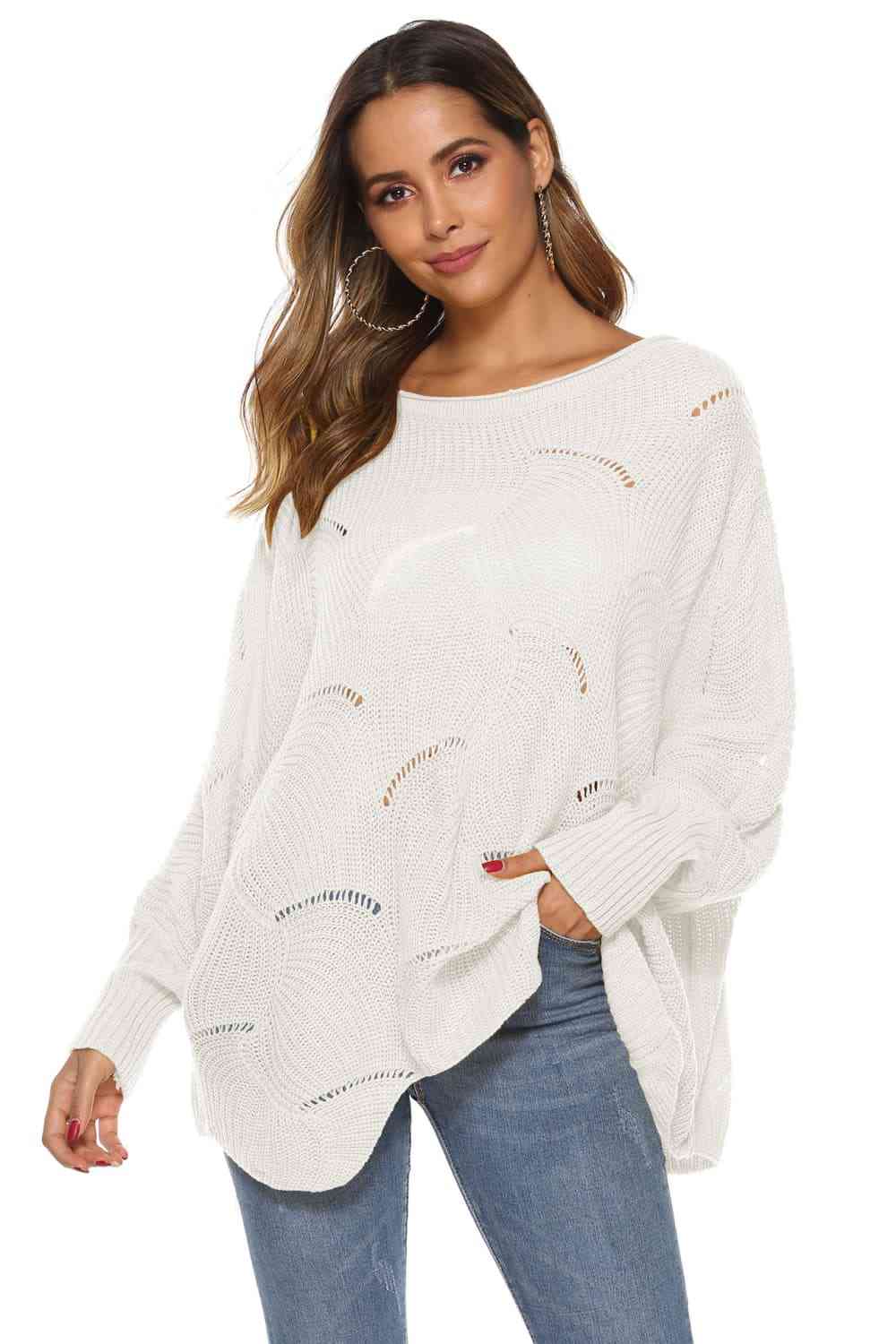 Round Neck Long Sleeve Openwork Sweater
