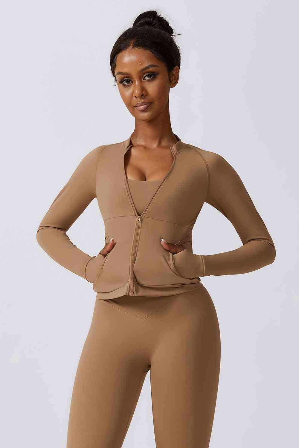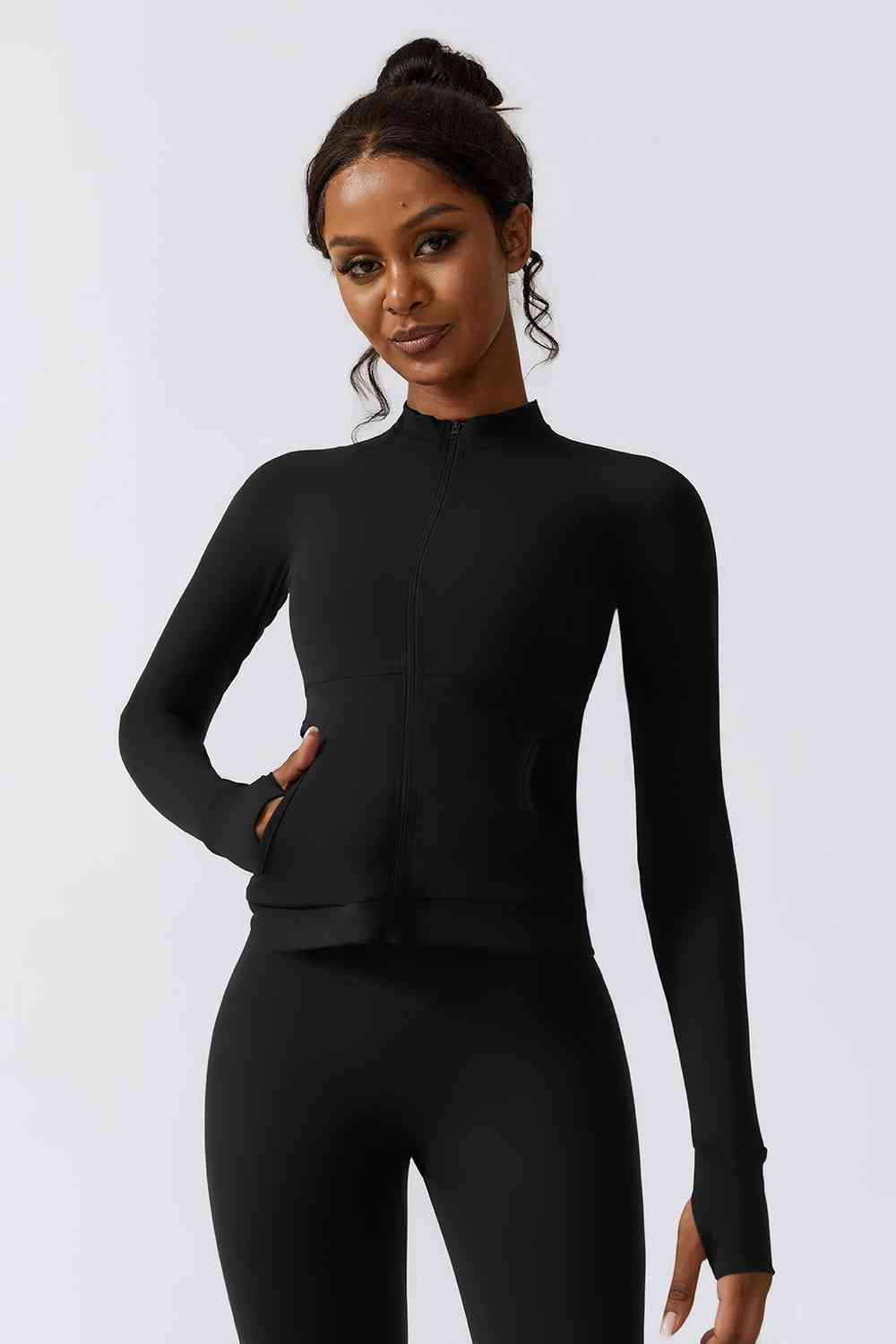 Zip-Up Long Sleeve Sports Jacket with Pockets